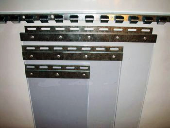 КРЕПЕЖ оцинкованный и нержавеющий для ПВХ завес. Комплект пластин (лицевая+ответная части) для полос 200, 300 и 400 мм с различным количеством проушин (Питерский и Московский вариант) Гребенка длиной 0,97 м с различным шагом ( Питерский и Московский вариант)